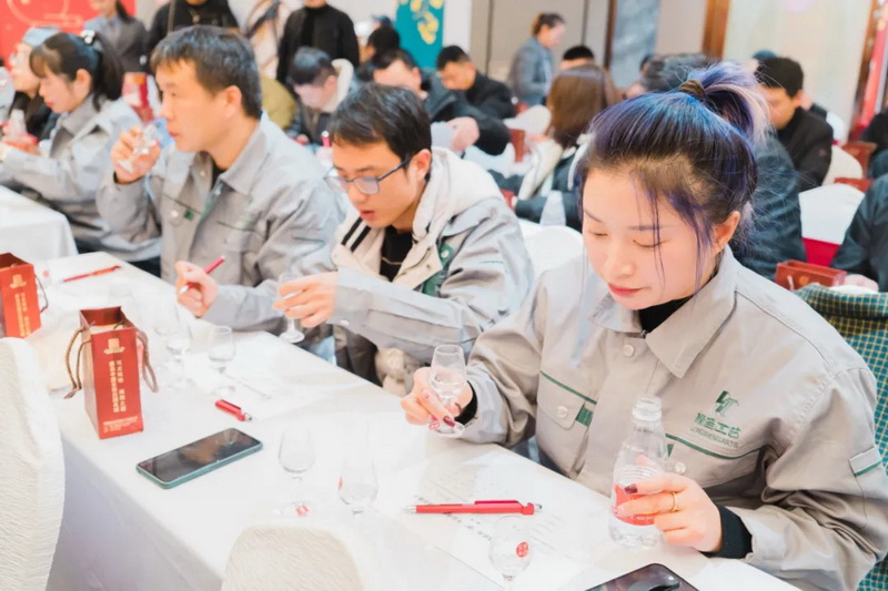 選手們在整場(chǎng)比賽中聚精會(huì )神,只見(jiàn)他們一個(gè)個(gè)輕端酒杯,對著(zhù)光線(xiàn)輕輕搖晃,觀(guān)察杯中酒液的色澤;湊近杯口,吸一縷酒香入鼻腔;再舉杯喝上一口、含于嘴中,讓其布滿(mǎn)舌尖。選手們不僅要品味出不同白酒的神奇魅力,同時(shí)也要交上一份精彩的答卷。