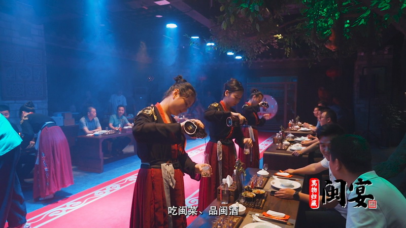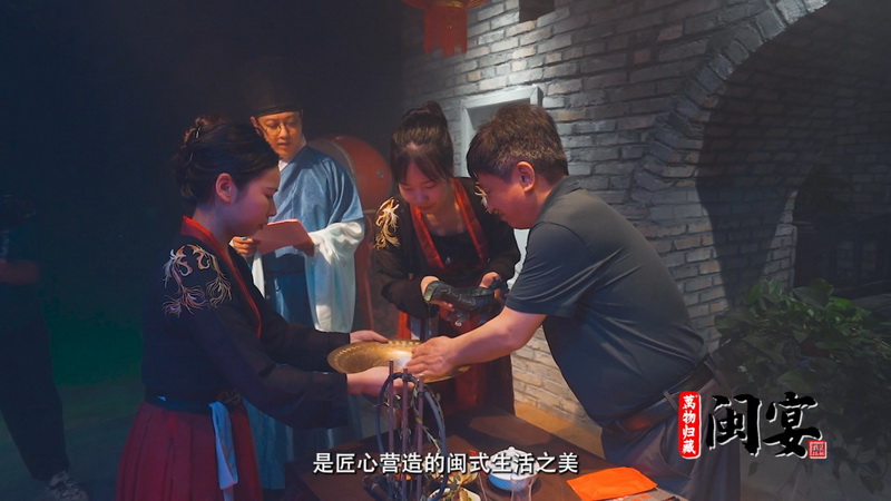 隨著(zhù)身著(zhù)宋服的姑娘們?yōu)橘e客行沃盥、奉酒之禮,一場(chǎng)以雙龍戲珠·萬(wàn)物歸藏10為載體,以閩源文化歷史為引的閩宴,在千年建州城拉開(kāi)帷幕。