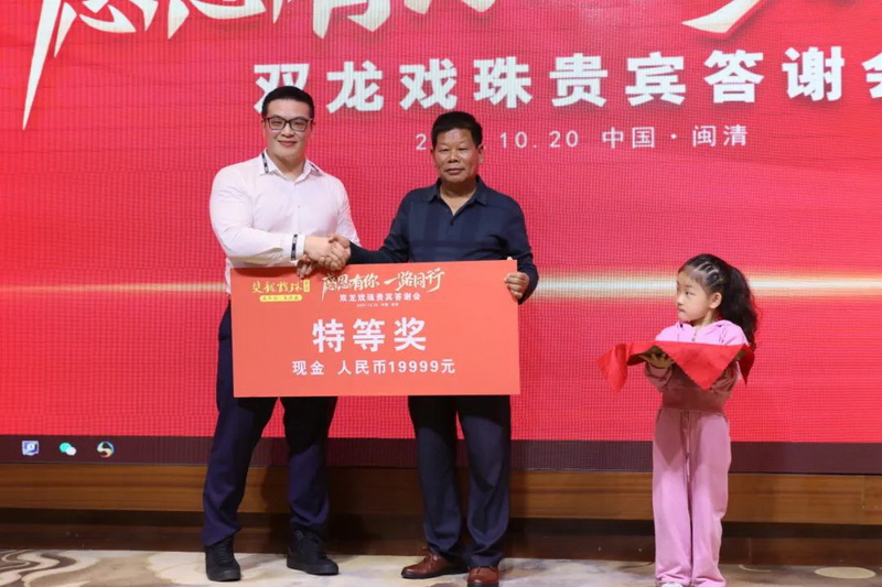感恩有你,一路同行!晚宴現場(chǎng)還隨機抽取了幸運觀(guān)眾并送出四輪重磅大獎,iPhone手機、10克金條、1985醬酒壇酒,更有特等獎19999元現金大獎!