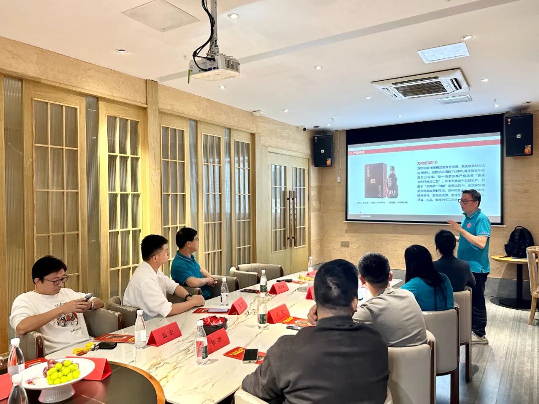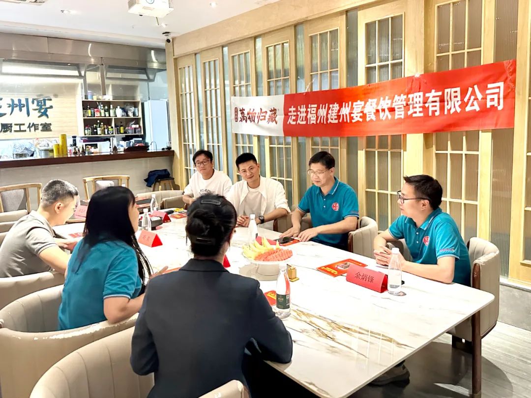 福州建州宴餐飲管理有限公司創(chuàng )始人吳烽對雙龍戲珠酒業(yè)一行的到來(lái)表示歡迎,他表示,與雙龍戲珠酒業(yè)的戰略合作充滿(mǎn)了期待,將秉持資源共享、優(yōu)勢互補的原則,通過(guò)各自在行業(yè)中的優(yōu)勢,打通高端圈層,進(jìn)行更深層次的務(wù)實(shí)合作,在謀求攜手共贏(yíng)的道路上行穩致遠。隨后帶領(lǐng)大家一起參觀(guān)了解建州宴企業(yè),座談會(huì )上,向大家介紹了建州宴企業(yè)的發(fā)展歷程、業(yè)務(wù)范圍、企業(yè)規模、企業(yè)文化等情況。