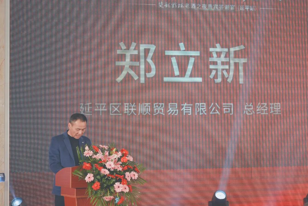 延平區聯(lián)順貿易有限公司總經(jīng)理鄭立新在致辭中感謝大家的出席,他表示延平市場(chǎng)的發(fā)展離不開(kāi)大家的支持,我們舉辦答謝宴,在品鑒高品質(zhì)老酒之際,也想借此機會(huì )加強彼此之間的聯(lián)系,讓各位朋友、伙伴體驗醬香之美,共贏(yíng)美好未來(lái)!
