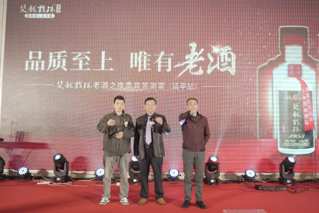 以酒為媒,以酒會(huì )友!12月3日-4日,以“品質(zhì)至上 唯有老酒”為主題的雙龍戲珠老酒之夜貴賓答謝宴(延平站)在延平區九峰大廈3樓宴會(huì )廳連開(kāi)兩場(chǎng)。福建雙龍戲珠酒業(yè)有限公司營(yíng)銷(xiāo)總監黃兆茂、延平區龍棲貿易有限公司總經(jīng)理潘建國、延平區聯(lián)順貿易有限公司總經(jīng)理鄭立新出席活動(dòng)并致辭。