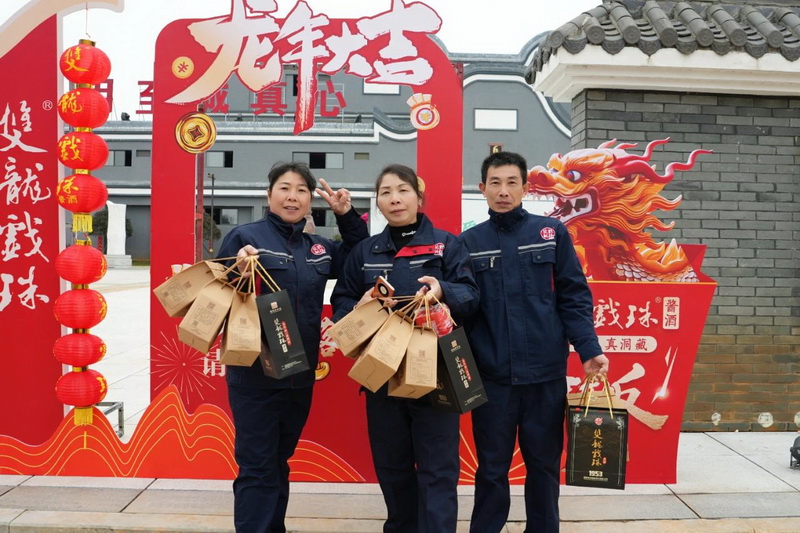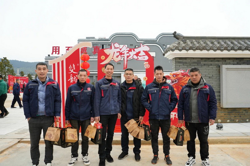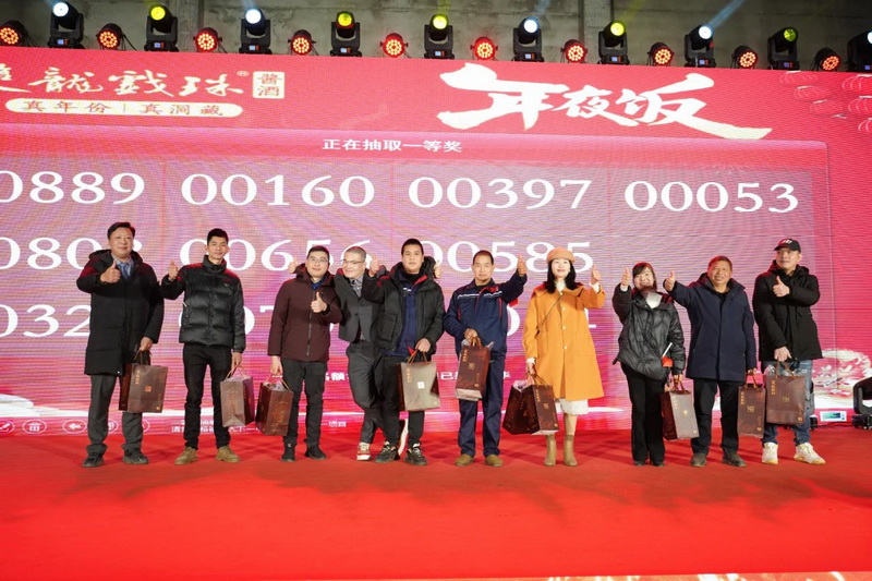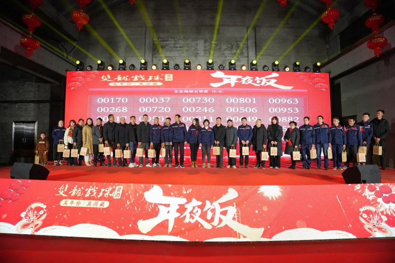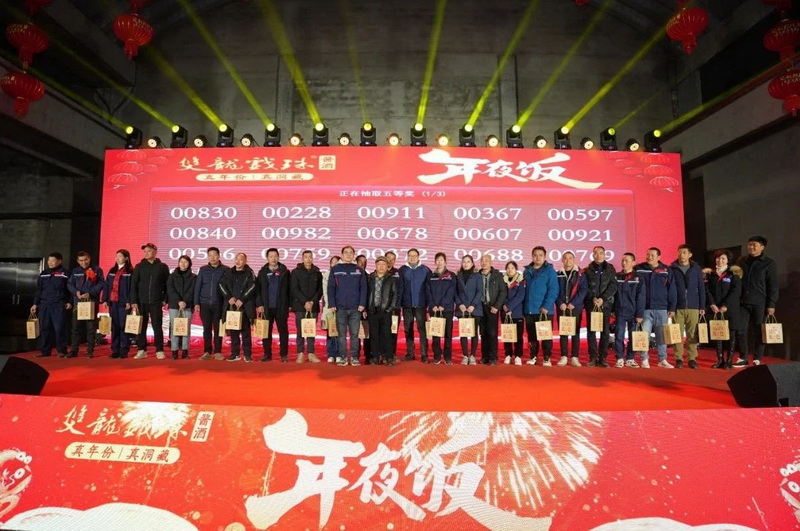 卯兔辭歲,辰龍迎新!為答謝全體員工一年來(lái)的辛勤付出,迎接嶄新的一年,1月26日,吉祥中國龍 雙龍戲珠酒——雙龍戲珠酒業(yè)年夜飯活動(dòng)在雙龍戲珠桐源基地隆重舉行。公司領(lǐng)導、貴賓、全體員工及家屬歡聚一堂,其樂(lè )融融,共同慶賀新一年的到來(lái)!