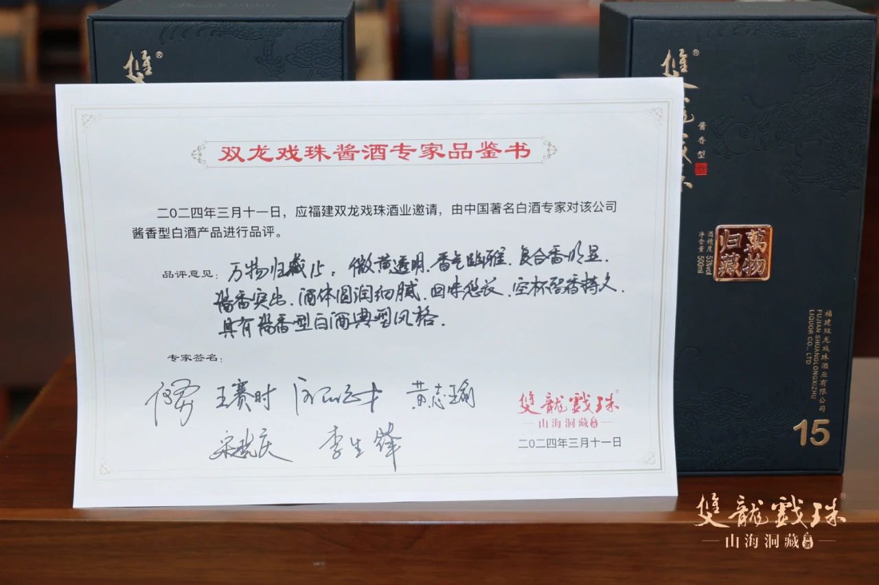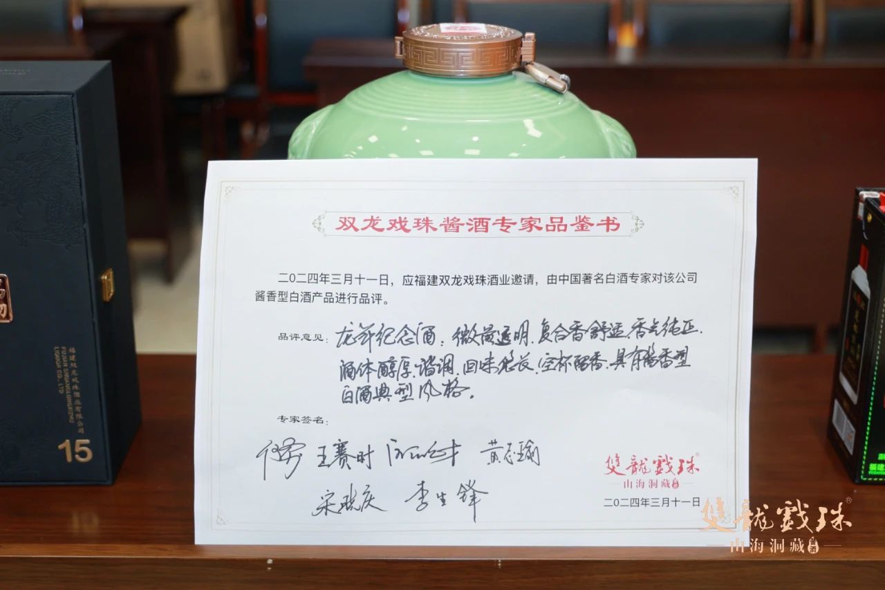 3月11日,中國酒業(yè)協(xié)會(huì )秘書(shū)長(cháng)何勇、中國酒史學(xué)家王賽時(shí)、國家一級品酒師黃志瑜、國家一級品酒師宋曉慶、國家白酒評委歐陽(yáng)元財、福建雙龍戲珠酒業(yè)有限公司總工程師李生鋒六位專(zhuān)家齊聚雙龍戲珠,對雙龍戲珠萬(wàn)物歸藏15、1953窖酒、龍年紀念酒進(jìn)行了現場(chǎng)權威鑒評,并給出了綜合評價(jià)。