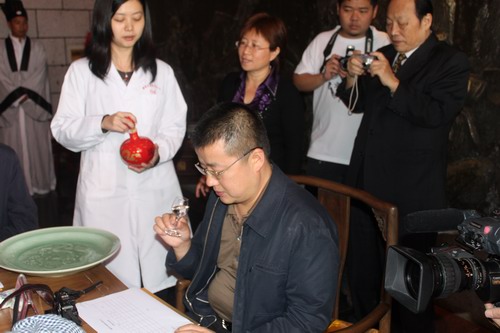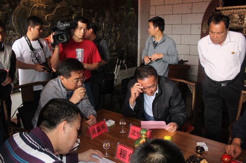 2011年5月25日,由福建省輕工業(yè)聯(lián)合會(huì )、四川省釀酒研究所、福建省白酒研發(fā)中心共同主辦的“雙龍戲珠酒專(zhuān)家鑒評會(huì )”在我司舉行。邀請專(zhuān)家有“中國白酒專(zhuān)家組副組長(cháng)、江蘇省釀酒協(xié)會(huì )會(huì )長(cháng)、白酒界泰斗沈怡方”;“四川省釀酒協(xié)會(huì )副會(huì )長(cháng)陳吉?!?;“四川省釀酒研究所所長(cháng)吳亞?wèn)|”;“ 四川省釀酒研究所副所長(cháng)、國家青年白酒專(zhuān)家楊官榮”;“瀘州老窖副總經(jīng)理、國窖1573酒體設計者張宿義”;郎酒集團酒體設計中心副主任程偉“;共同對雙龍戲珠酒進(jìn)行鑒評。