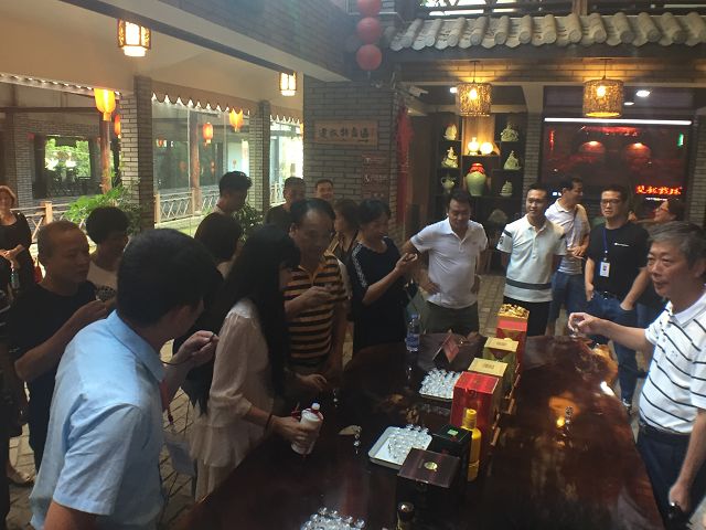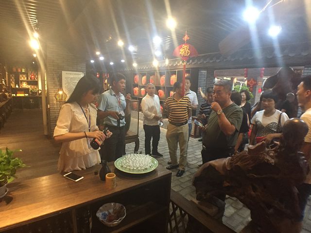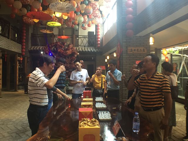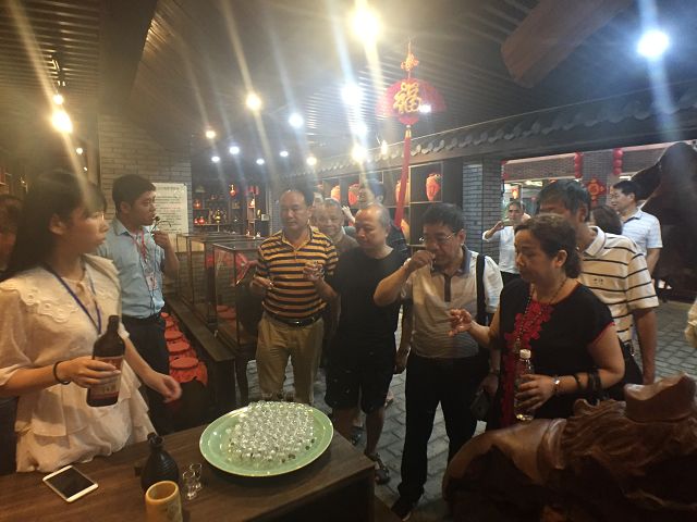 南平市青商會(huì )一行人在公司總經(jīng)理黃盛堯陪同下,相繼參觀(guān)了公司的產(chǎn)品展示大廳,白酒傳統釀制工藝,以及貯酒山洞——雙龍洞,與會(huì )嘉賓還品飲了雙龍戲珠白酒。