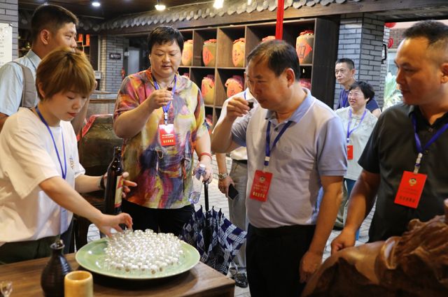 領(lǐng)導們品嘗雙龍戲珠西坑紅老酒