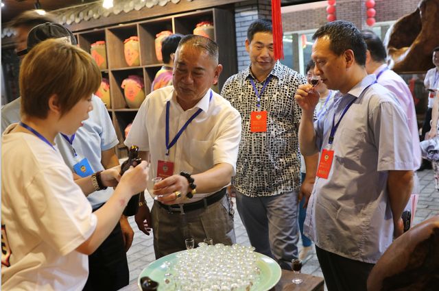 領(lǐng)導們品嘗雙龍戲珠白酒