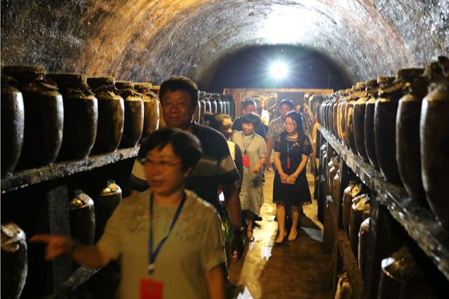 領(lǐng)導們參觀(guān)貯酒山洞——雙龍洞